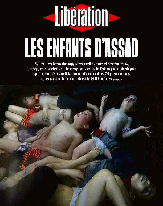 Une de Libération du 6 avril 2017 après le bombardement au gaz d’un village en Syrie et la mort de plusieurs dizaines de civils.