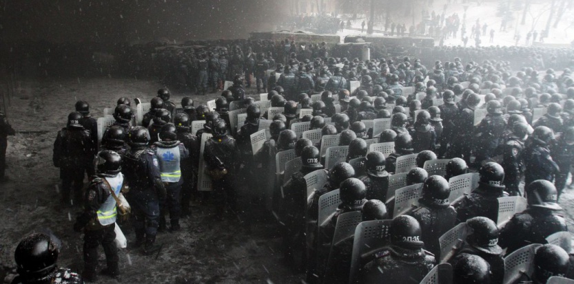 Place Maidan, forces anti-émeutes avant la journée du 22 janvier 2014 (Ukraine)
