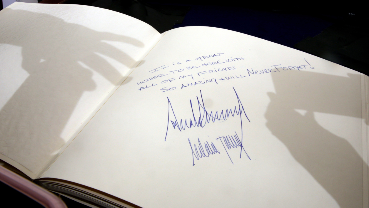Livre d’or signé par Trump après la visite au Mur des Lamentations (Israel)